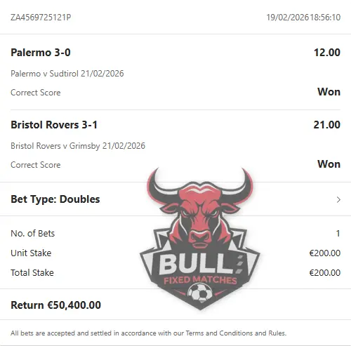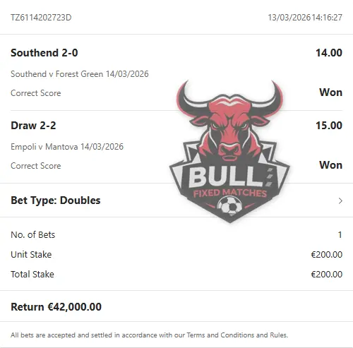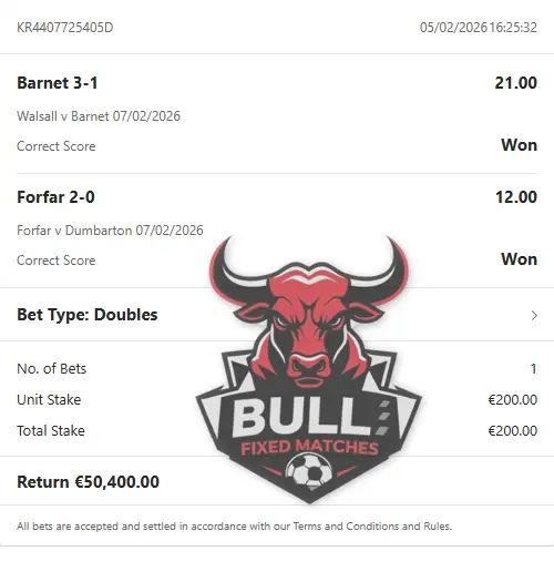 Visit the article about our CORRECT FIXED MATCHES or contact us for more information.