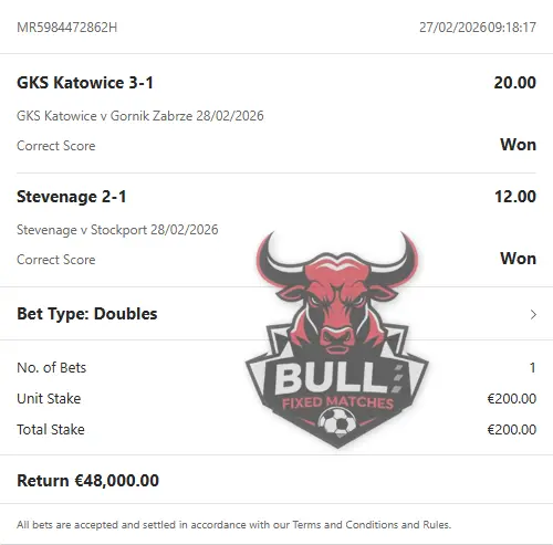 28.02.2026 Stevenage vs Stockport County CS: 2:1 (12.00) 2:1